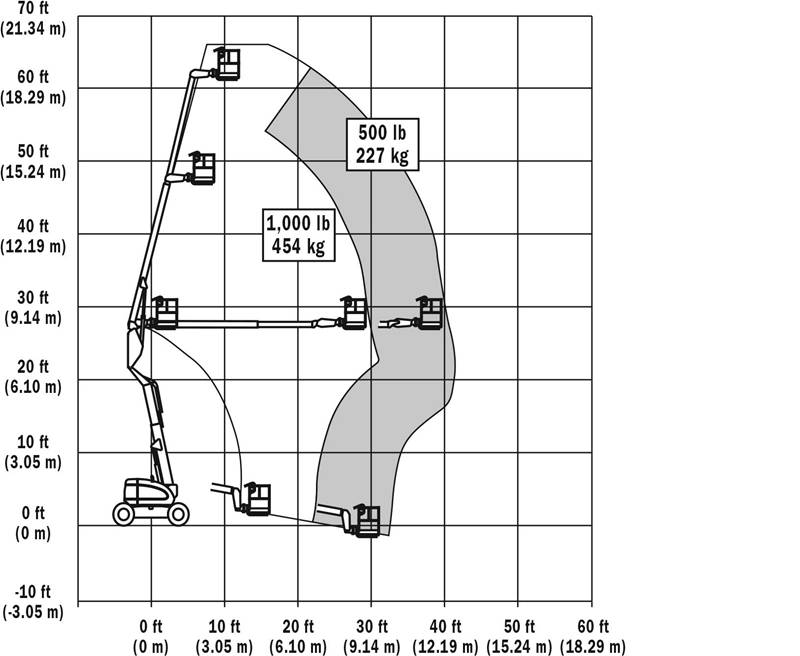 600A發(fā)動機驅動曲臂式高空作業(yè)平臺工作范圍圖